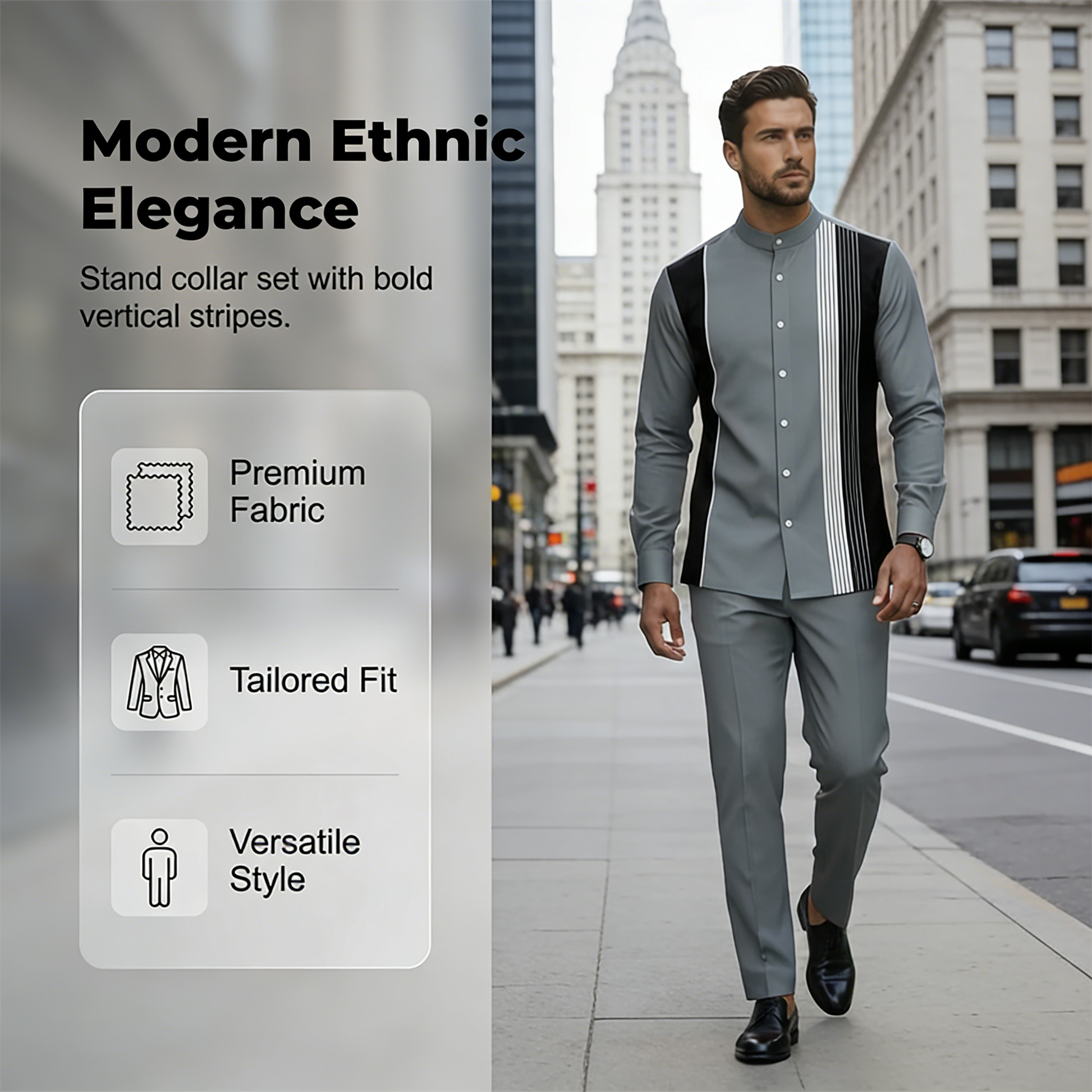 WYRAFINOWANE DETALE SZWÓW – Zwróć uwagę na drobne detale, takie jak trwałe zapięcia na guziki i wzmocnione szwy. Ten zestaw został stworzony, aby wytrzymać codzienne noszenie, zachowując jednocześnie swój ekskluzywny wygląd.