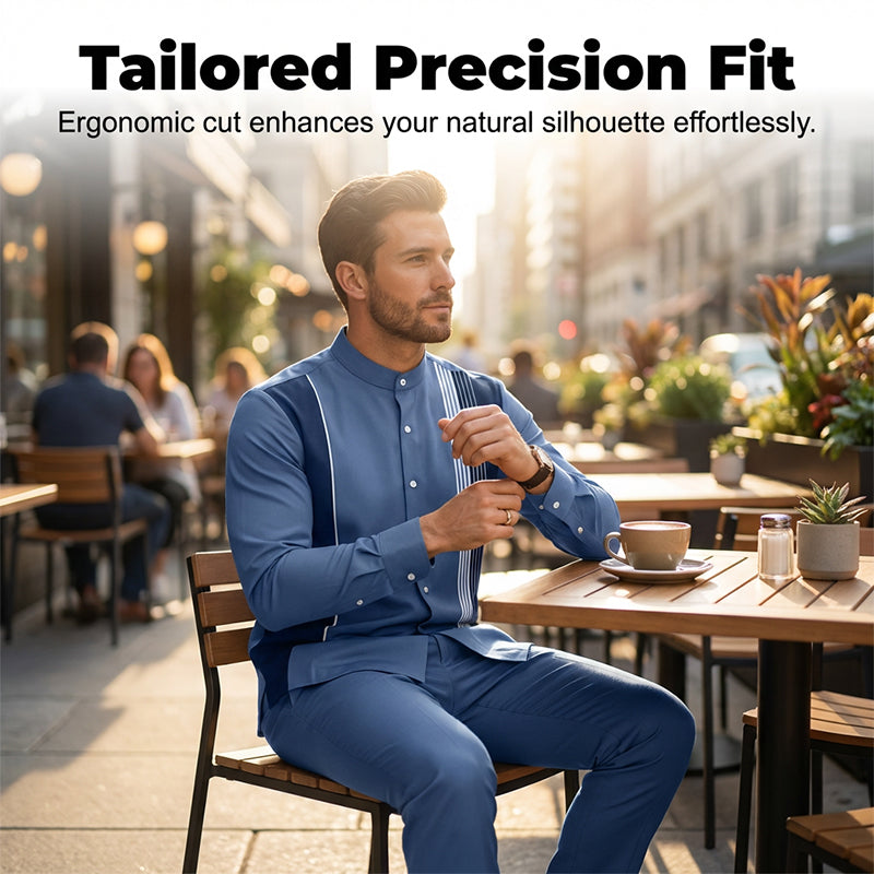DOPASOWANY ZESTAW DWUELEMENTOWY – Dzięki temu idealnie dopasowanemu zestawowi dwuelementowemu nie musisz już zastanawiać się nad tym, co założyć. Dopasowana koszula z długim rękawem i spodnie natychmiast tworzą spójny, elegancki wygląd.