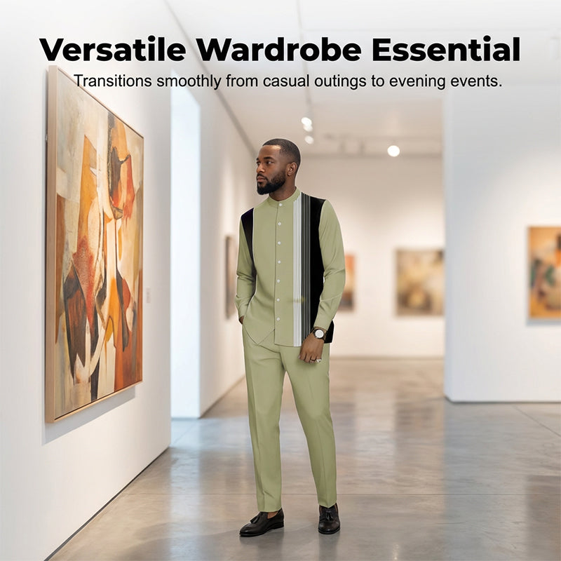 ✨ Męski zestaw dwuczęściowy: koszula w paski i spodnie – styl casualowy 👖