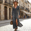 Długa sukienka damska z długim rękawem i dekoltem w serek